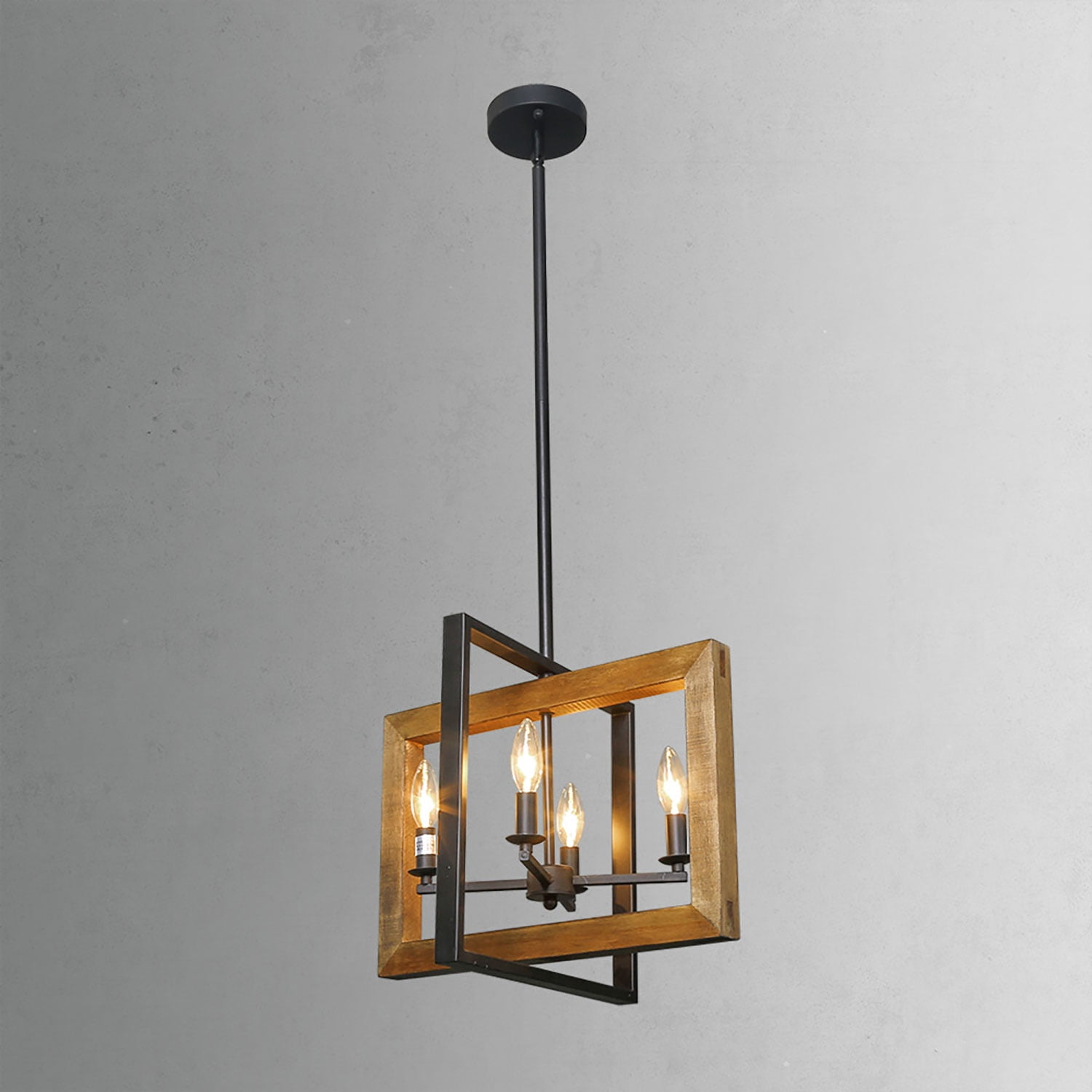 Baiwaiz Rustic Wood Chandelier Metal Rectangle Dining Room