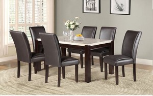 7pc Set Dining Room Furniture Marble Top Dark Cherry Finish 6 Side