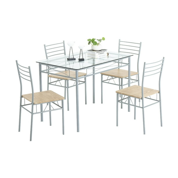 Shop Vecelo Glass Dining Table Sets With 4 Chairs Kitchen Table