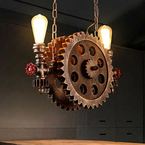 2 Lights Gear Wheel Pendant Light Retro Industrial Bronze