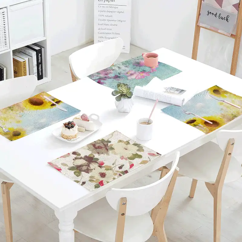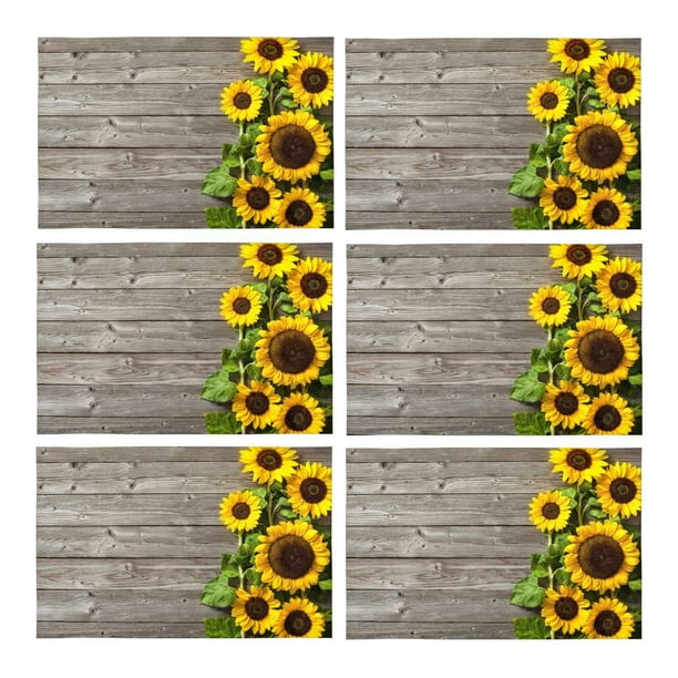Mkhert Autumn Sunflowers Wood Pattern Placemats Table Mats For