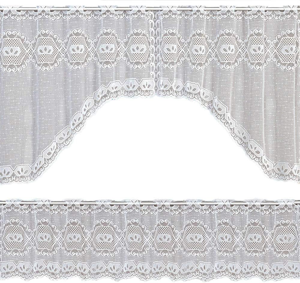 Zhh Embroidery Semi Sheer Lace Curtain Kitchen Cafe Dining Room