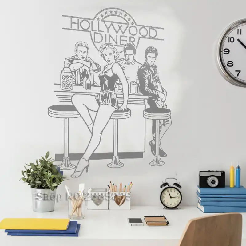 Hollywood Diner Vinyl Murals Wall Stickers Art Dining Room Decor