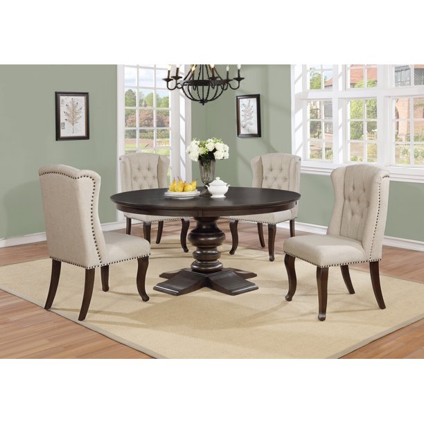 5pc Dining Set Round Table Beige Or Gray Walmart Com Walmart Com