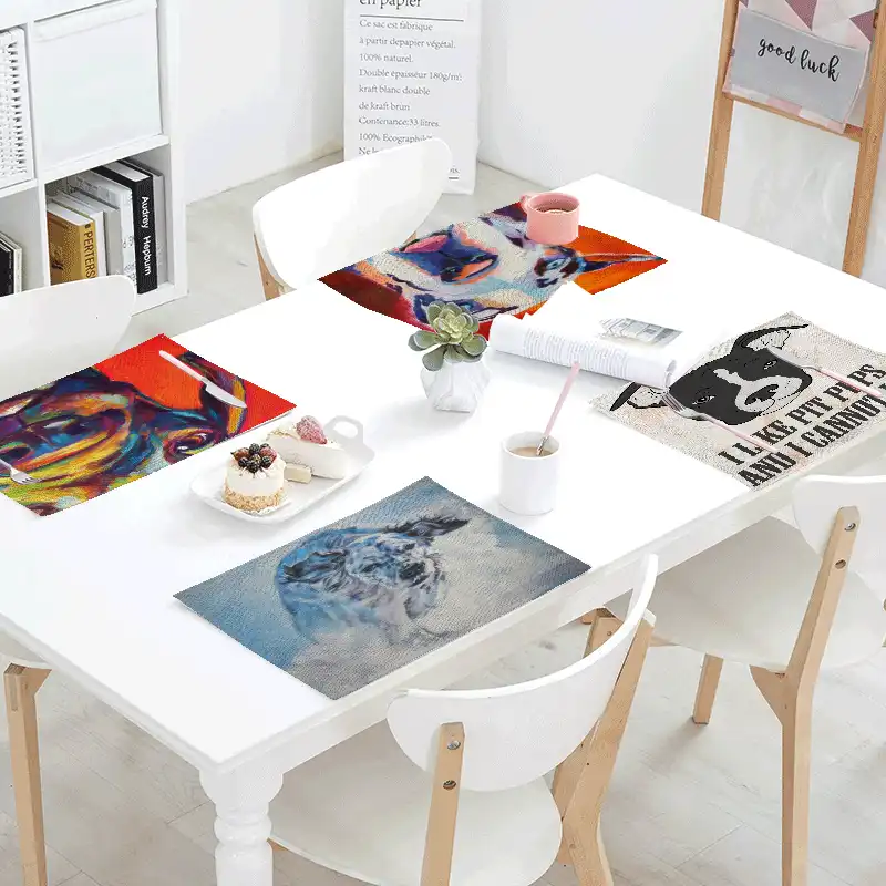 Oil Painting Style Dog 42x32cm Tablecloth Letters Snow Kitchen