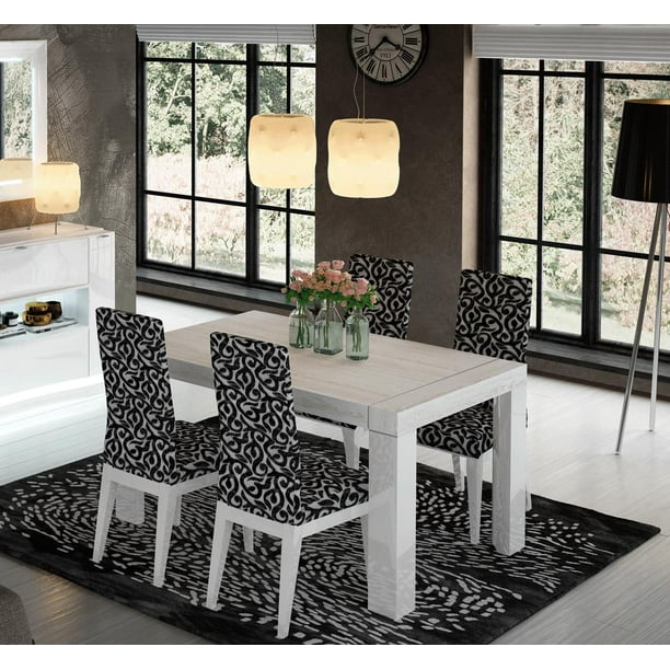 White Black Lacquer Dining Room Set 5pcs Modern Made In Spain