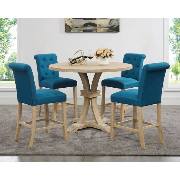 Siena White Washed Finished 5 Piece Counter Height Dining Set