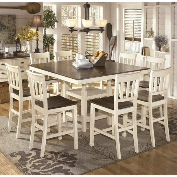 Whitesburg 9 Piece Square Counter Height Extension Table Set In